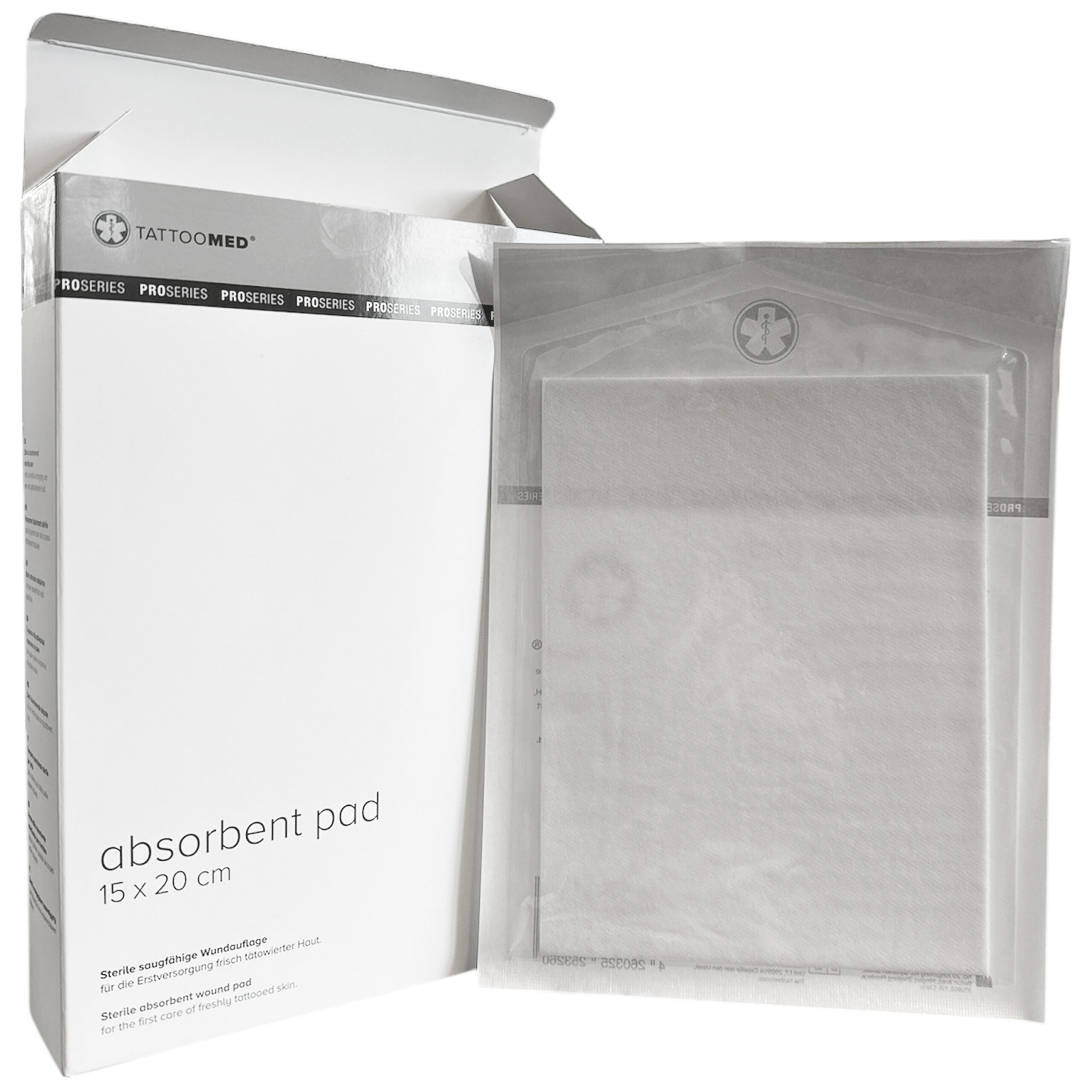 Our Pro Series product TattooMed Absorbent Pad offers the optimal function to support the skin during this stressful and risky time for it. The special cotton cellulose fabric, which ensures optimal absorbency, absorbs ink residues and wound fluid and also prevents excessive drying – an excellent alternative for allergy sufferers.