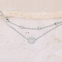 This multi-strand bracelet is perfect for your layered look. The different stainless steel chains combined with the shiny heart pendant are guaranteed to attract attention! No matter the occasion – with this piece, you’re ready for any event.