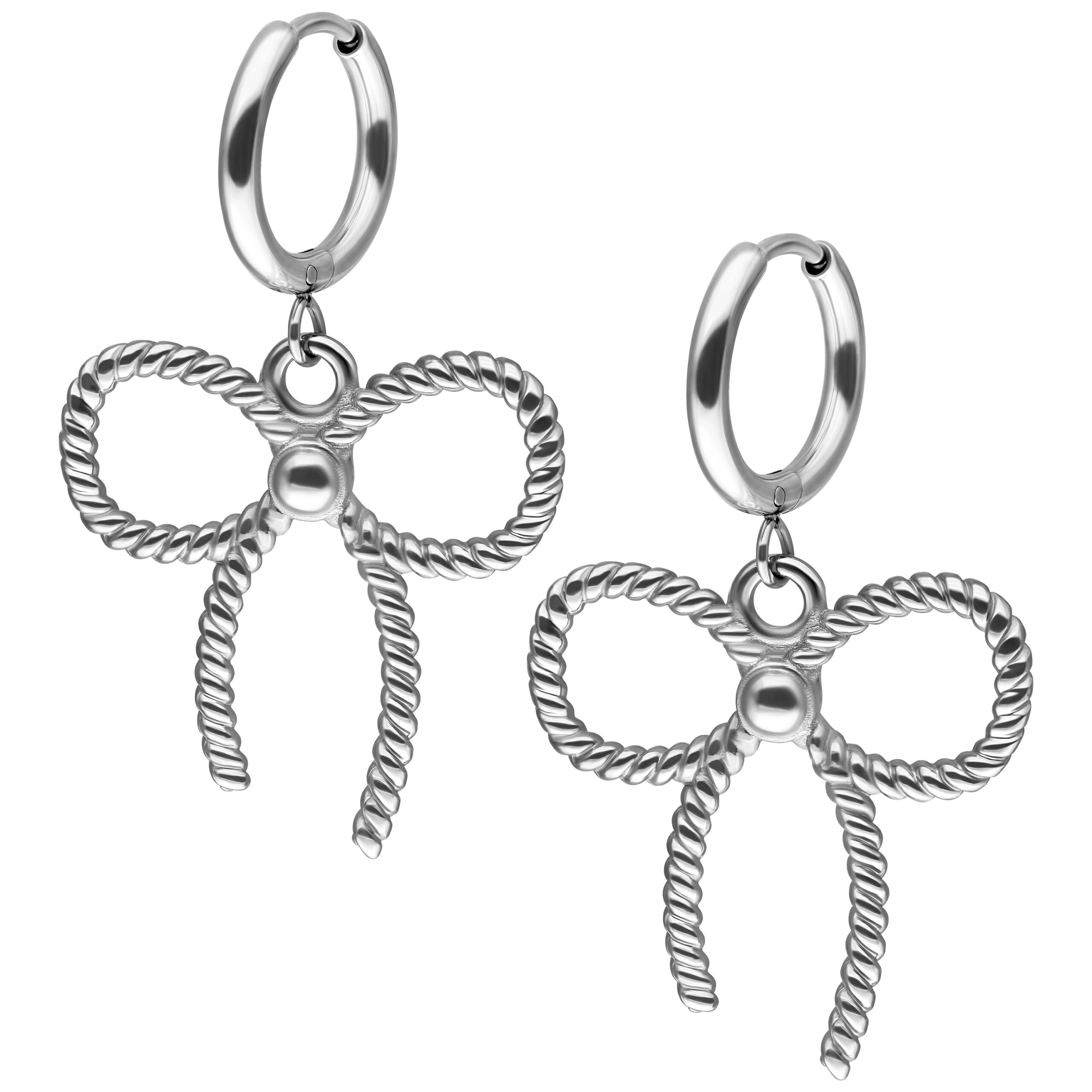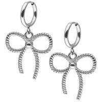 The matching Twisted Bow Hoops add a charming highlight: the artistically twisted bow shape looks both modern and playful — a delightful eye-catcher that adds a sweet touch to any outfit. The hoops are also made from durable 316L surgical steel, known for its skin-friendliness, tarnish resistance, and lasting quality.