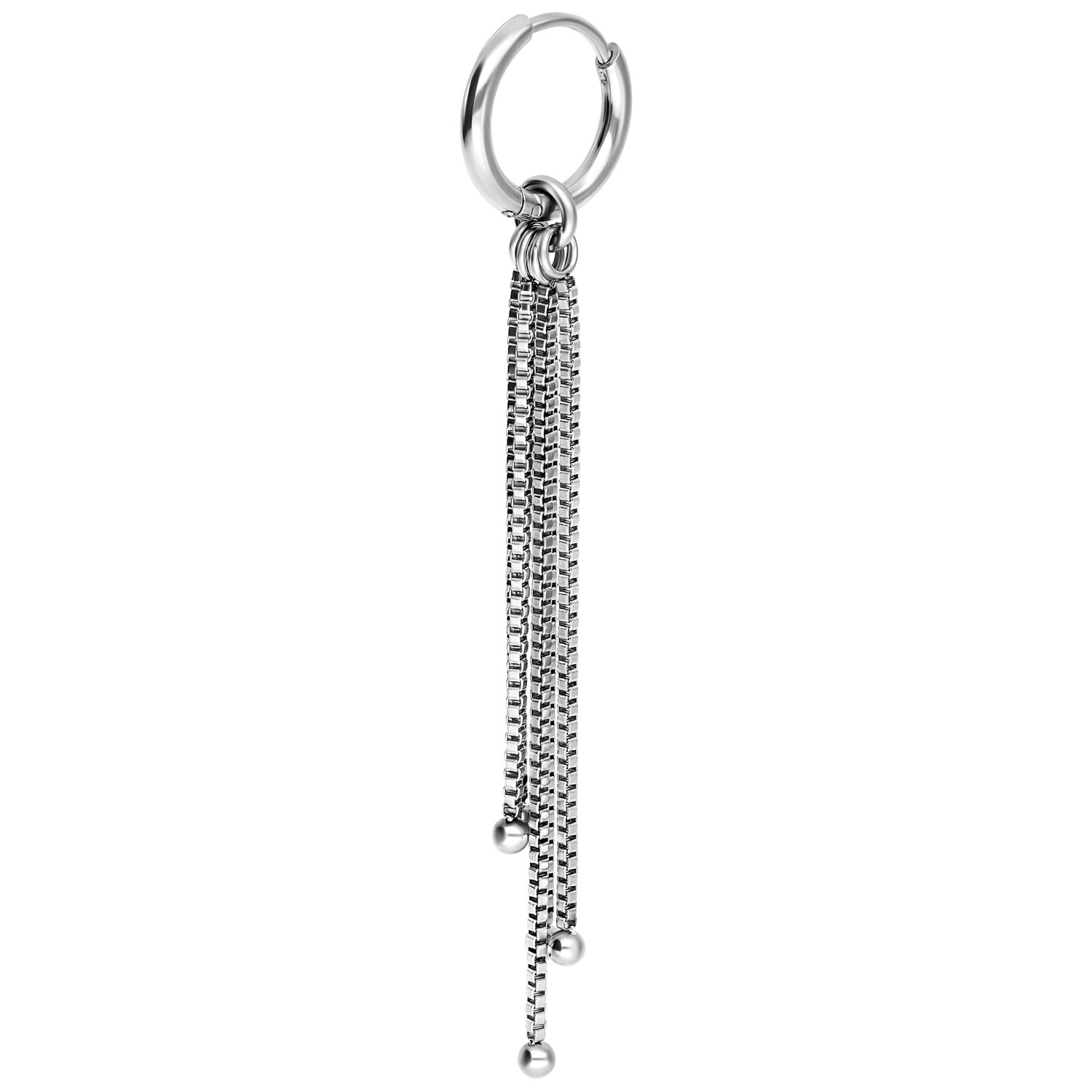 These feature a small hoop with three delicate chains attached, gently swaying with every movement and creating a fascinating look. With a hoop diameter of 10.0 mm, they are suitable for standard piercings as well as tunnels – a true all-rounder for your individual style.