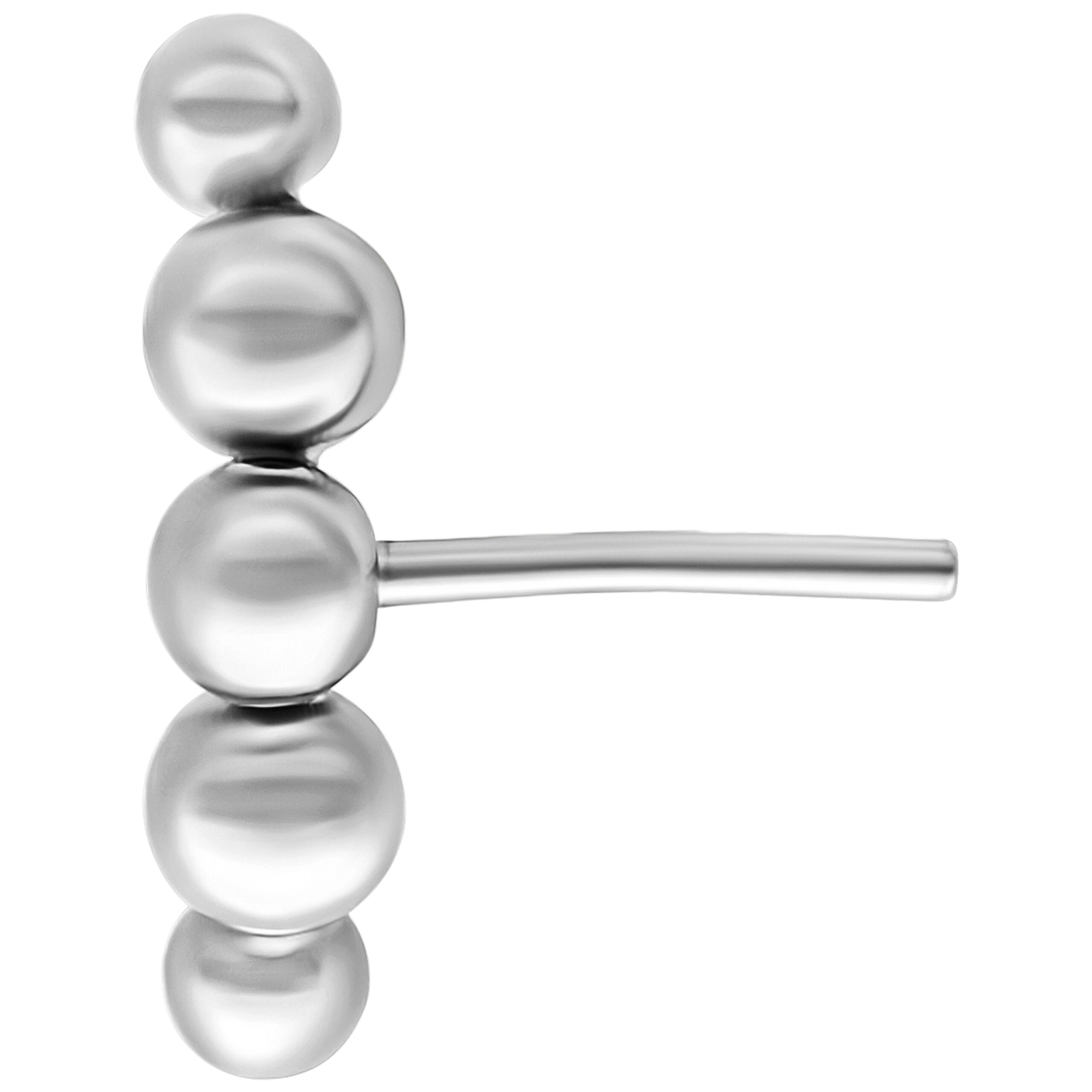 Our Push Fit Curved Bubble attachment gives your ear a shiny finish in the trendy bubble style. We love this style, which is simply something different and is great for combining! Five small bubbles fit together harmoniously and create a unique earcatcher that stylishly emphasizes your personality and individuality. Set a very special accent with this push fit attachment in a gently curved shape.