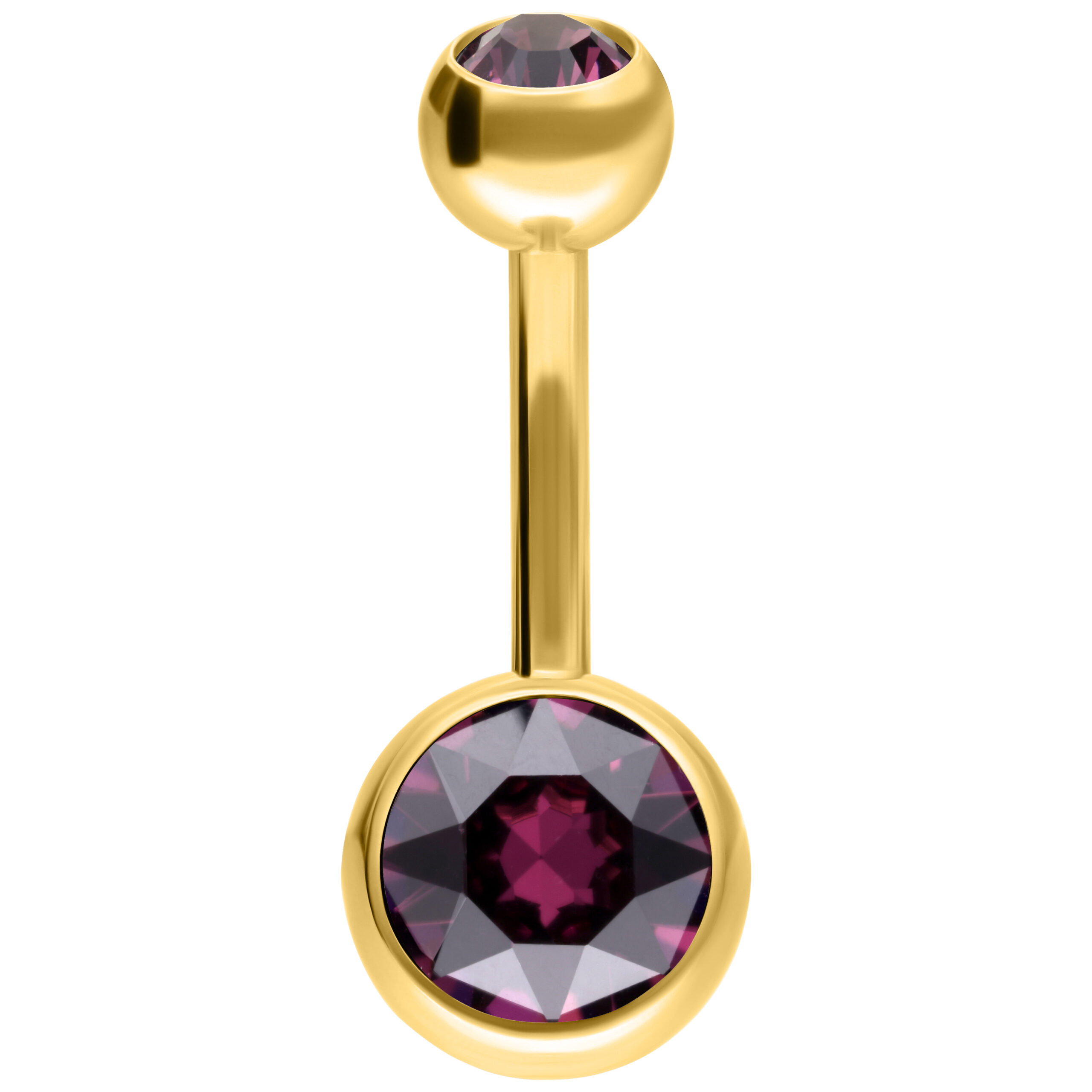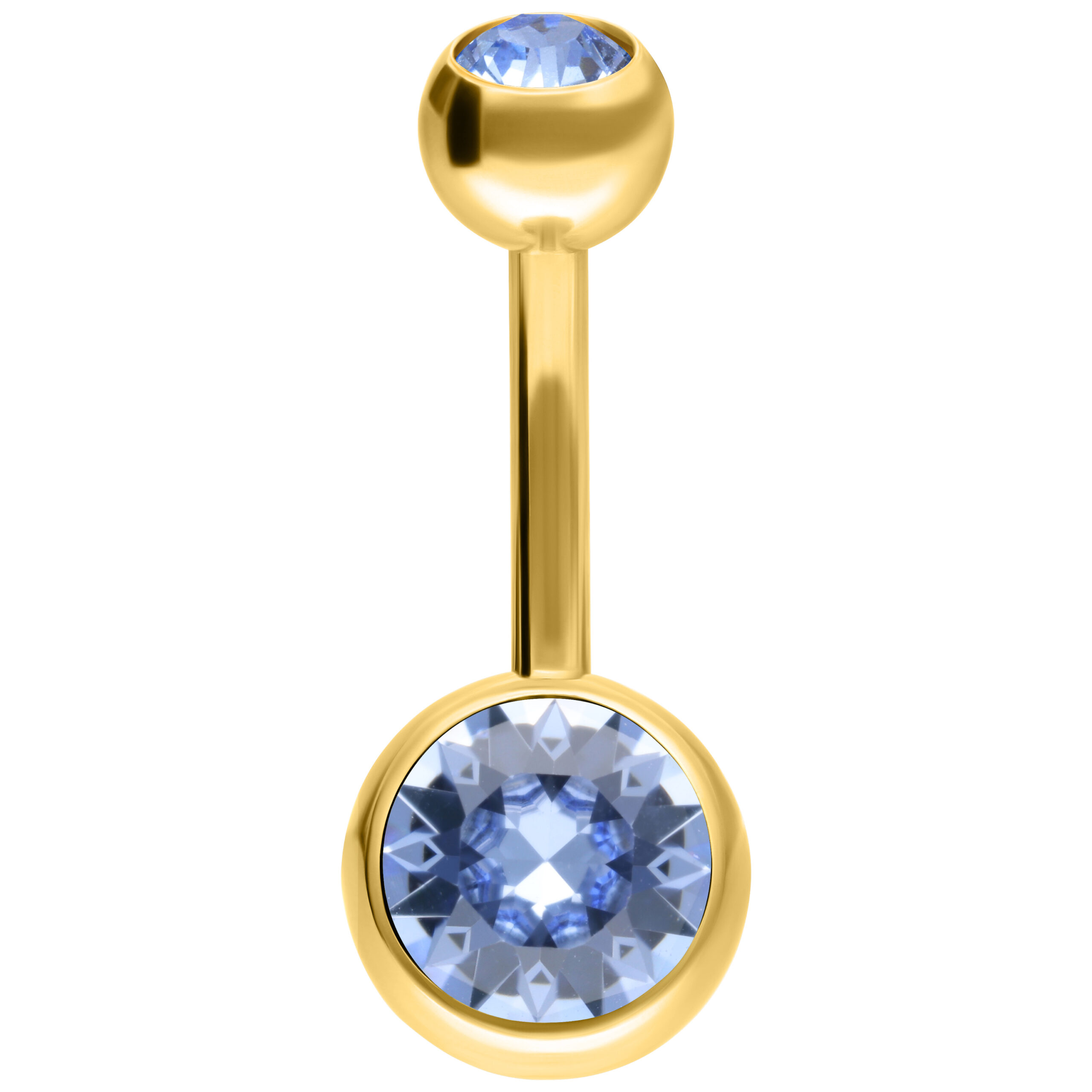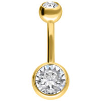 The titanium Zirconline® Multicut Double Jewelled Bananabell is equipped with a larger ball in 8.0 mm and a smaller ball in 5.0 mm and is available with facet cut crystals.