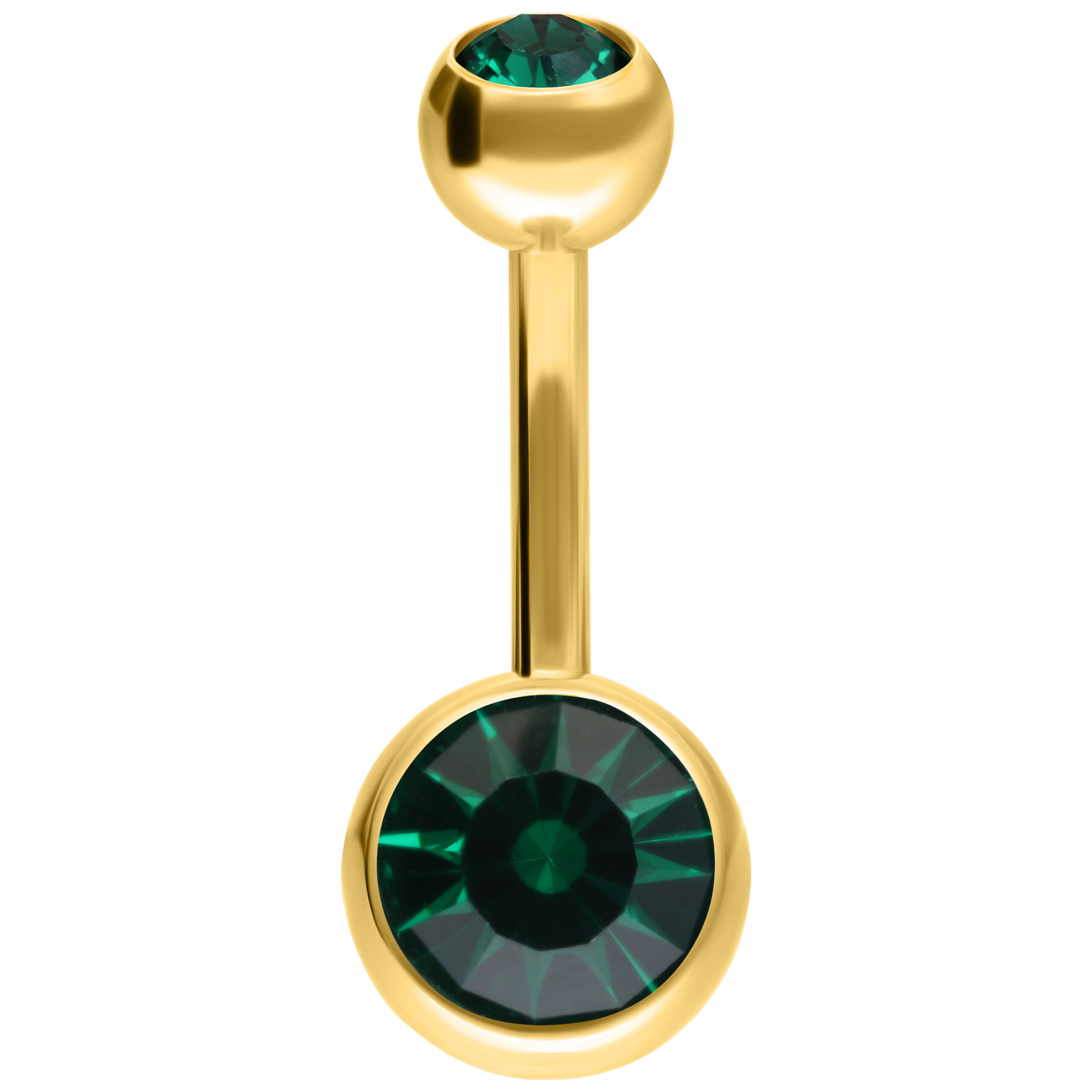 The slightly curved bar is externally threaded. The spheres can be screwed onto the external threads of our externally threaded bananabells. Incidentally, all threads in our jewellery collections are standardised so that you can combine the rings, baubles, rods and attachments in 1.6 mm with each other! You can find the replacement spheres without crystal that match the Bananabell in the Titan Zirconline® under the item designation GTB, and the spheres with crystal under GJS.