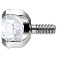The BYCG attachment has an external thread with a thread thickness of 0.8 mm and thus fits perfectly on an internally threaded labret with a thickness of 1.2 mm. The high precision internal thread without sharp edges allows a perfect fusion of labret and attachment. In combination with the Lock-Tight system, it ensures the ultimate hold with a simple and smooth jewellery changing process.