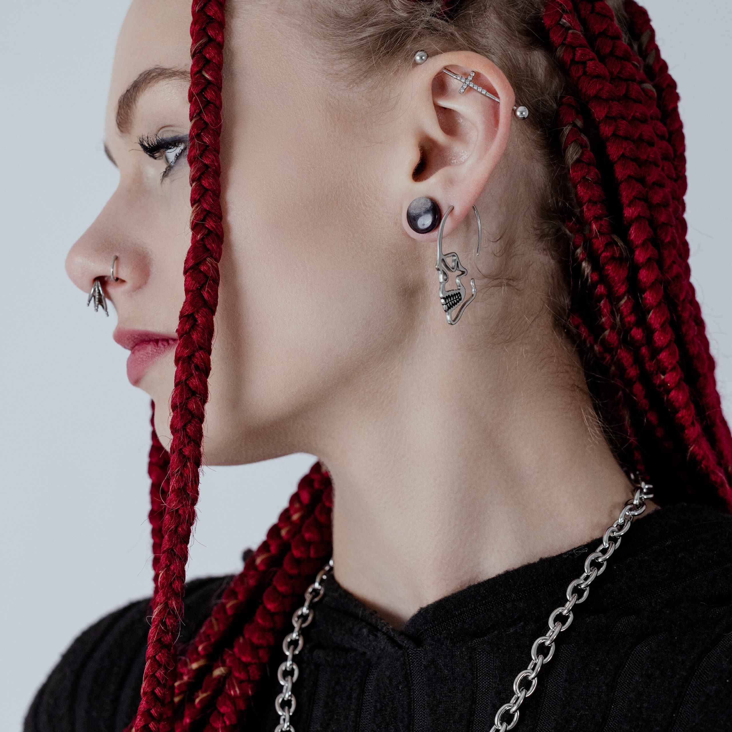 These fantastic earrings are made of stainless steel with a natural color and are characterized by the shape of a skull.