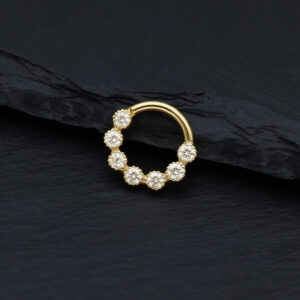 Its balanced design captures and reflects light beautifully, creating a refined glow that enhances your unique style. Perfect for septum, daith, or helix piercings, this fine piece combines comfort, durability, and luxury.
