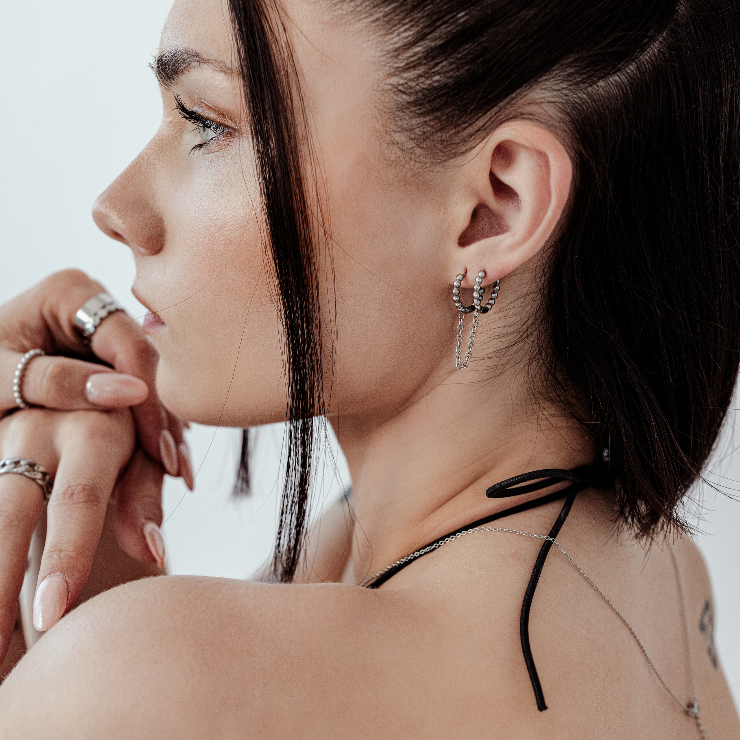 With these beautiful huggies, you can elegantly connect two of your favorite piercings. The small bubbles make your look a real eye-catcher.
