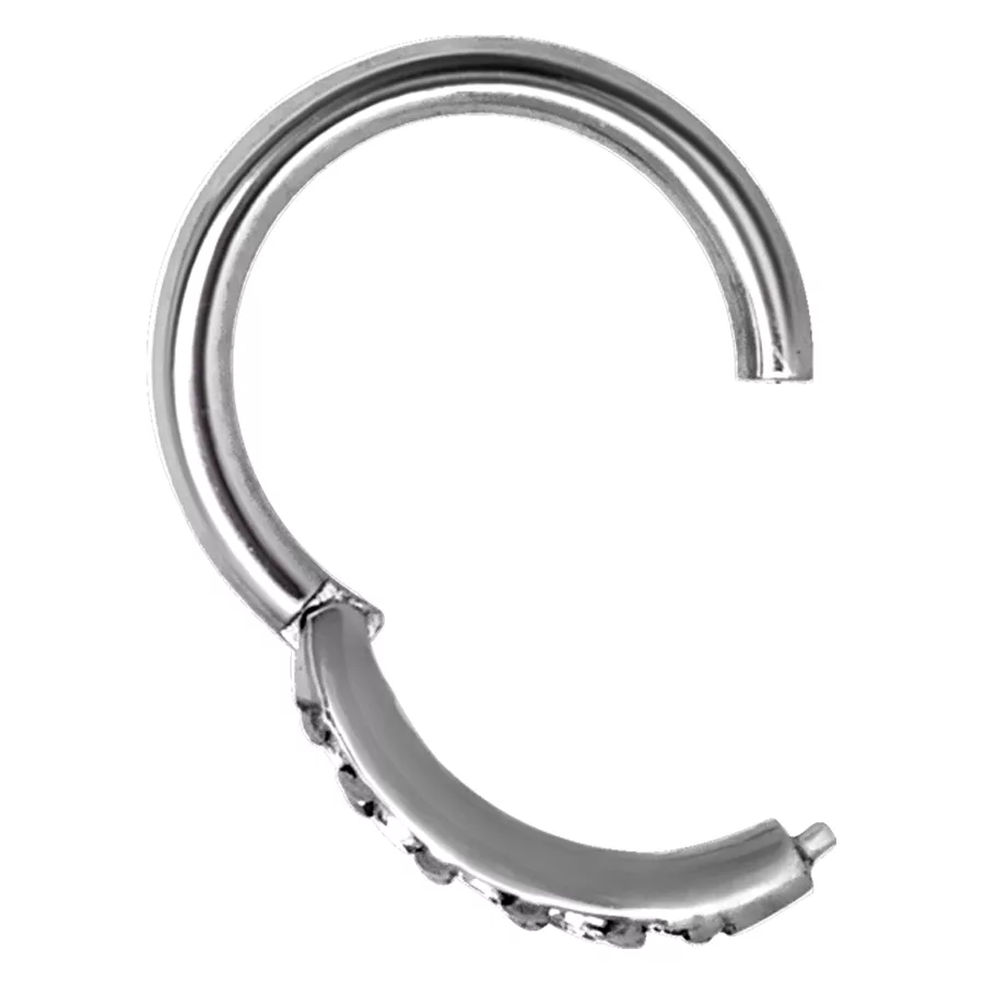 Top Pave Crystal Clicker. You always lose your shutter from the segment ring? Then this article is just right for you. Through the hinge, you can push the buckle to the side of the rose gold jewelry and push the hinge back again and the jewelry sits.
