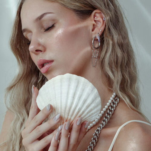 Curated piercings thrive on interplay – especially colour. Whether tone-on-tone or deliberately combined, crystal colours add accents, create harmony or exciting contrasts. Combined with gold or silver, they create a look that is clear, high-quality and individual. Nine curated body bit looks show how individual piercings can be combined to create a harmonious overall look – coordinated, modern and full of expression.